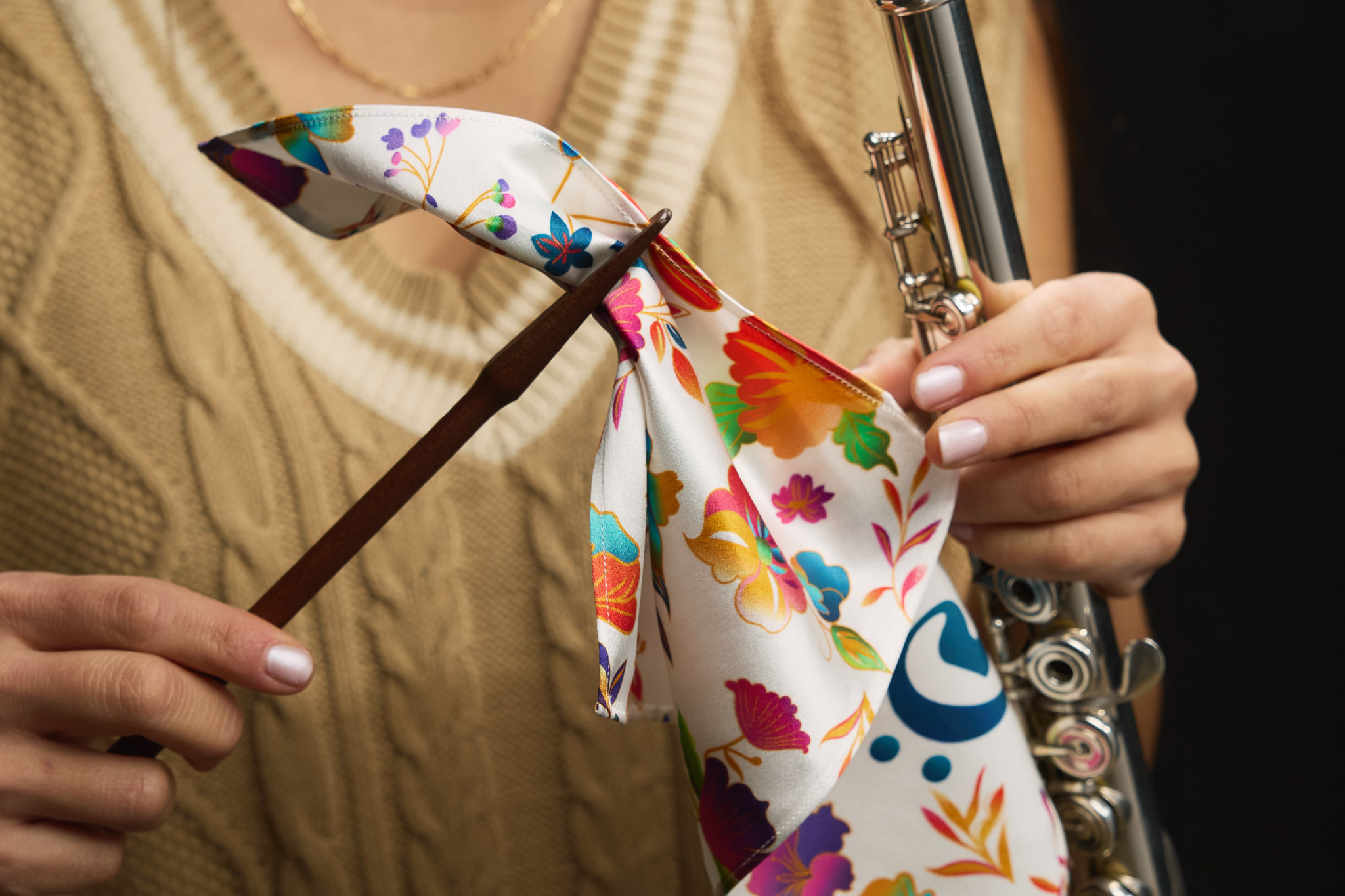 • 100% Mulberry Silk for Superior Absorption – Crafted from drapey, durable silk, our swab absorbs moisture effectively in one pass without snagging inside your flute. Unlike coated fabrics, our silk remains raw and unprocessed for maximum drying efficiency • Gentle & Safe for High-End Flutes – Unlike polyester blends or coated cotton swabs that can cause micro-abrasions, our pure silk swab is ultra-soft and safe for silver, gold, and platinum flutes, ensuring long-term protection for your instrument • Premium Stitching for Long-Lasting Durability – Our silk swabs are reinforced with dense, precise stitching to withstand repeated hand and machine washing, providing reliable use with a lifetime warranty • Designed for C Flutes – Specifically made for C flutes. This swab ensures a thorough, hassle-free cleaning experience for professional and beginner flutists alike • Ethically Sourced, Expertly Crafted – We source our silk from Seidentraum, a supplier known for transparency and ethical practices, and ensure precision printing and stitching for the highest quality standards